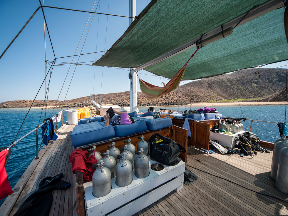 This trip consisted of a week aboard the Dolphin Services livaboard – the Deli – a Turkish Gulet run by Diving Instructor, Riccardo Marchetto and manned by their super Djiboutian crew members. The boat is fully equipped for divers with dive tank compressor and 2 skiffs to run the dives from. There are 6 ensuite rooms with bunk beds to comfortably accommodate 12 guests, a large deck with sun beds is situated out on the bow, there is a large galley below for all your digital camera charging needs and the breakfast/dining area is out on the stern where the Cook serves up some fantastic meals!